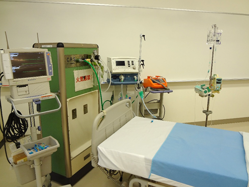 病室を再現したシミュレーションルームには、高機能シミュレーターを設置しています。