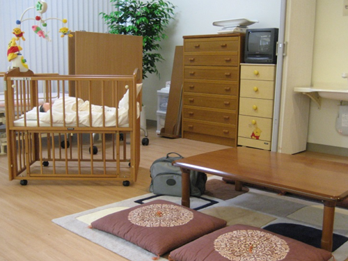 小児看護、母性看護を学ぶ部屋です。子ども用のベッドや赤ちゃんの人形があったり、沐浴台が設置されていたりします。